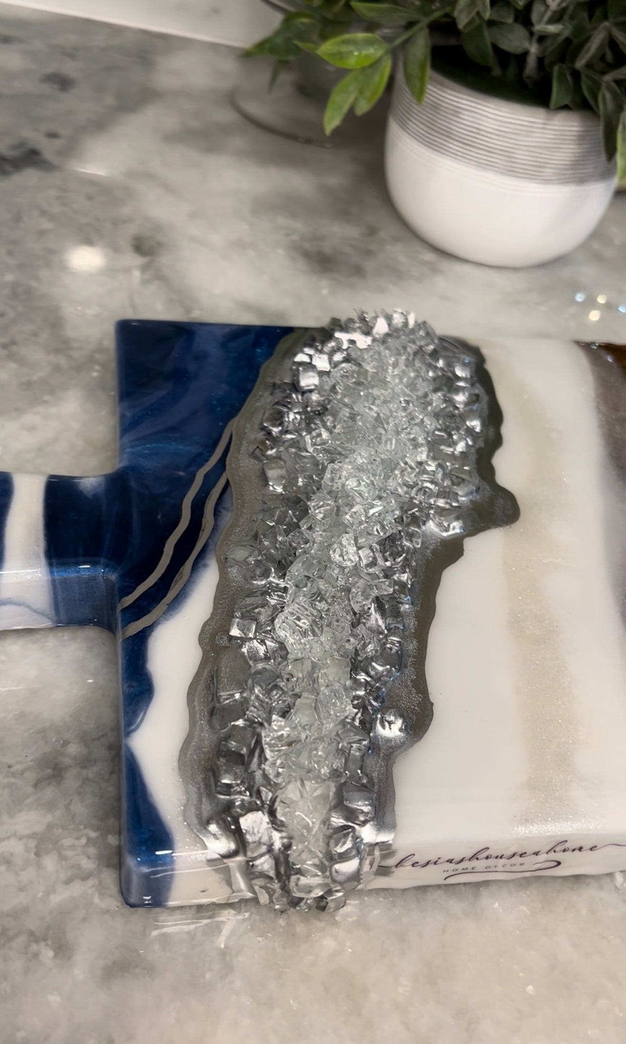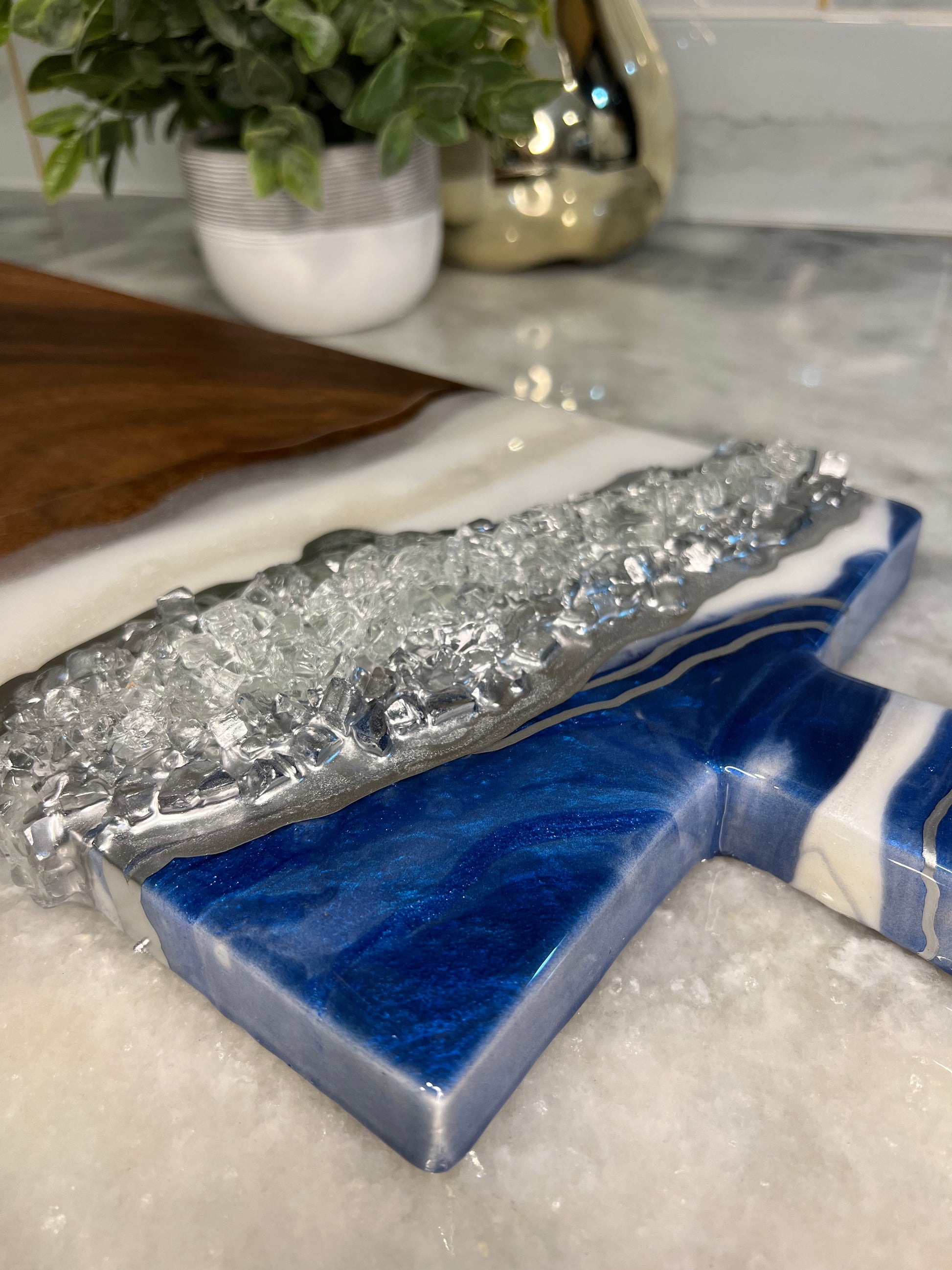 This Geode inspired Charcuterie Board can be used for styling or hosting! Board comes treated with a food safe oil that not only conditions but is also safe for food.