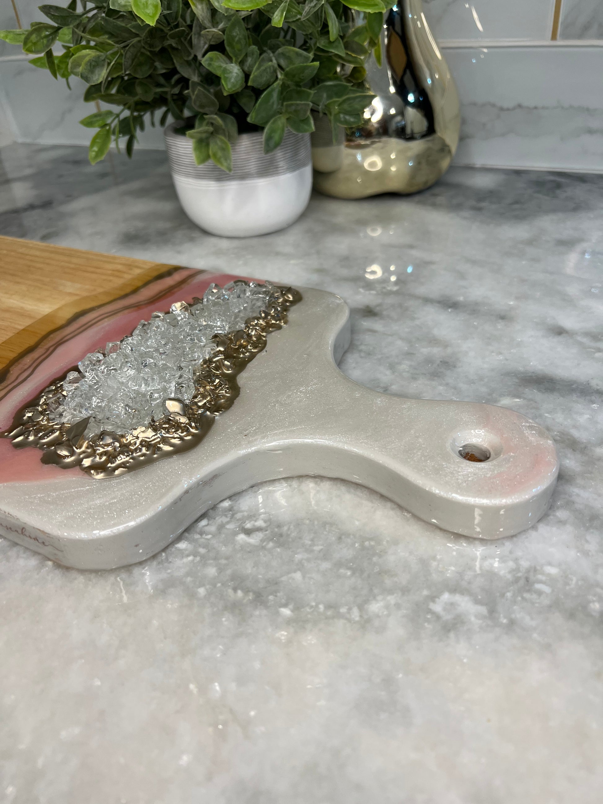 This Geode inspired Charcuterie Board can be used for styling or hosting! Board comes treated with a food safe oil that not only conditions but is also safe for food.