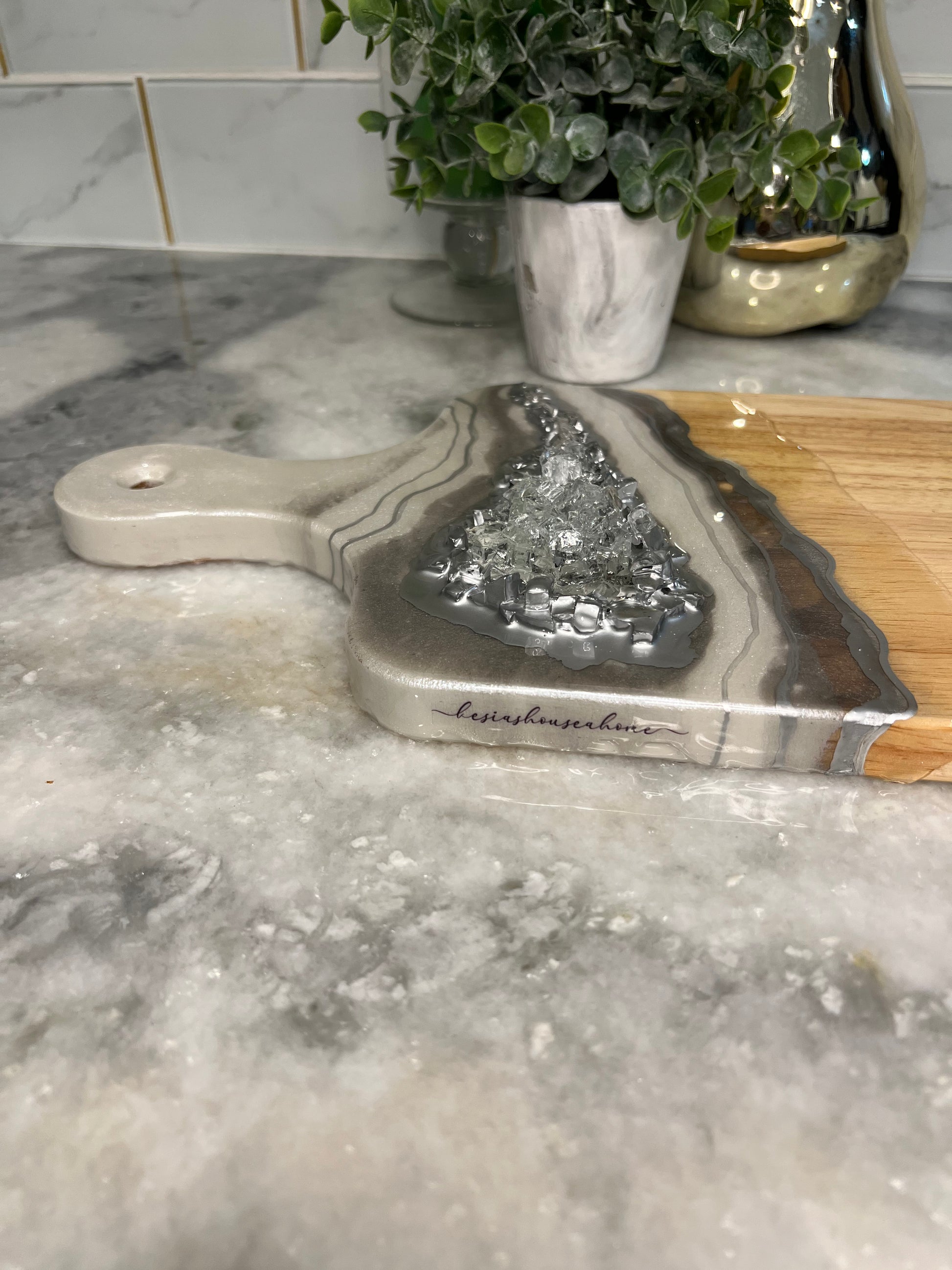 This Geode inspired Charcuterie Board can be used for styling or hosting! Board comes treated with a food safe oil that not only conditions but is also safe for food.